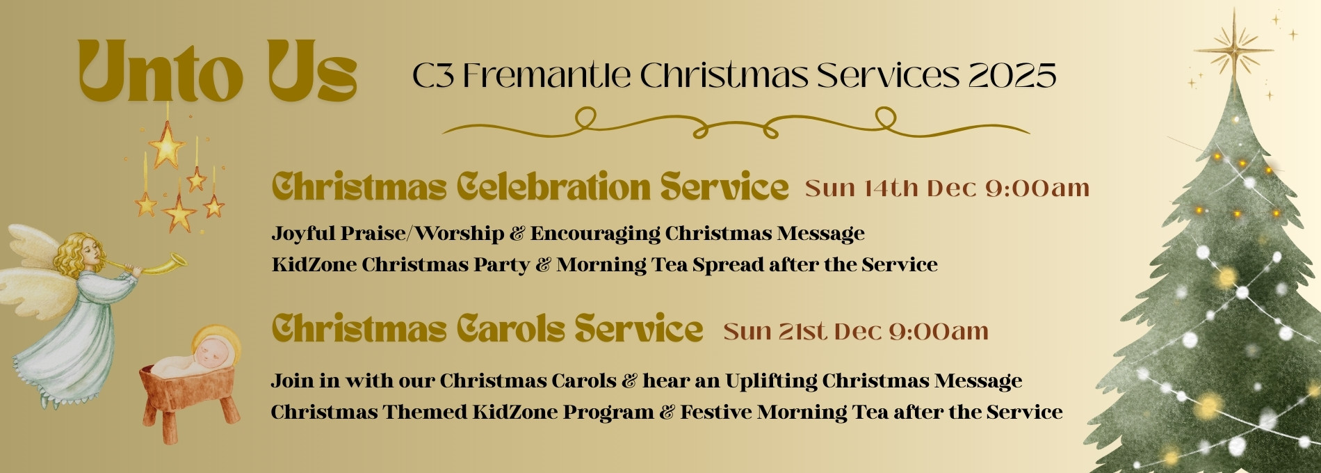 Come along and join in with all the Caroling led by our C3 Fremantle Worship Team. Our Senior Pastor Unami Magwenzi will be sharing a truly meaningful and uplifting Christmas message that will fill your heart afresh with hope and peace this season. Our KidZone Program will be presenting a Christmas themed lesson and after the service join us out in the foyer for a festive morning tea spread.